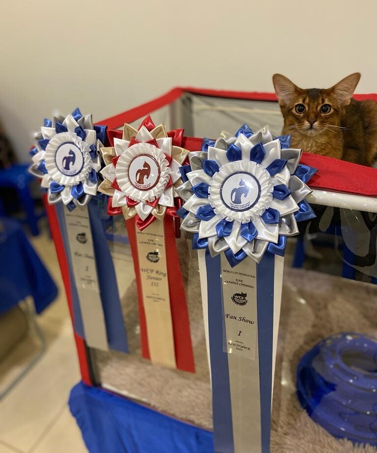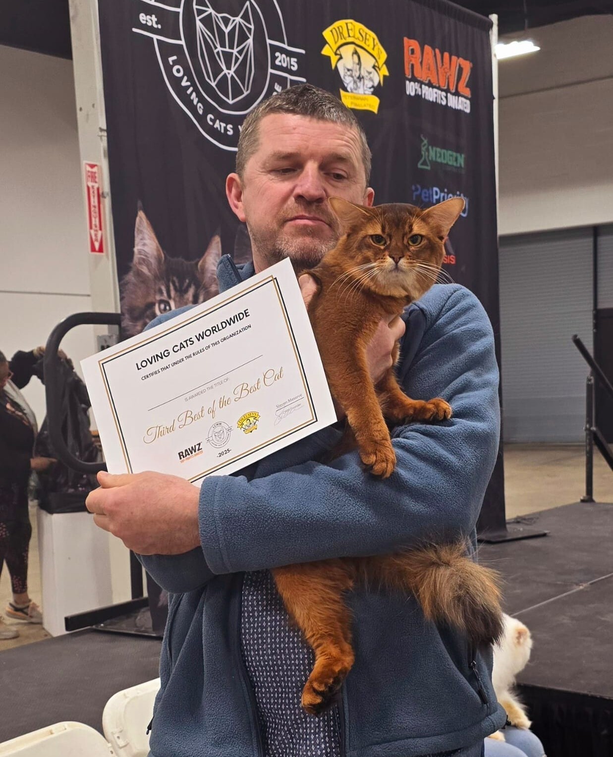Друзья, у нас прекрасная новость! Кот Лунтик из нашего питомника, который в январе 2025 года нашёл себе новый дом в Канаде, получил титул третий бэст в породе на выставке в Торонто! Поздравляем Лунтика и его новых хозяев! Очень гордимся вами!